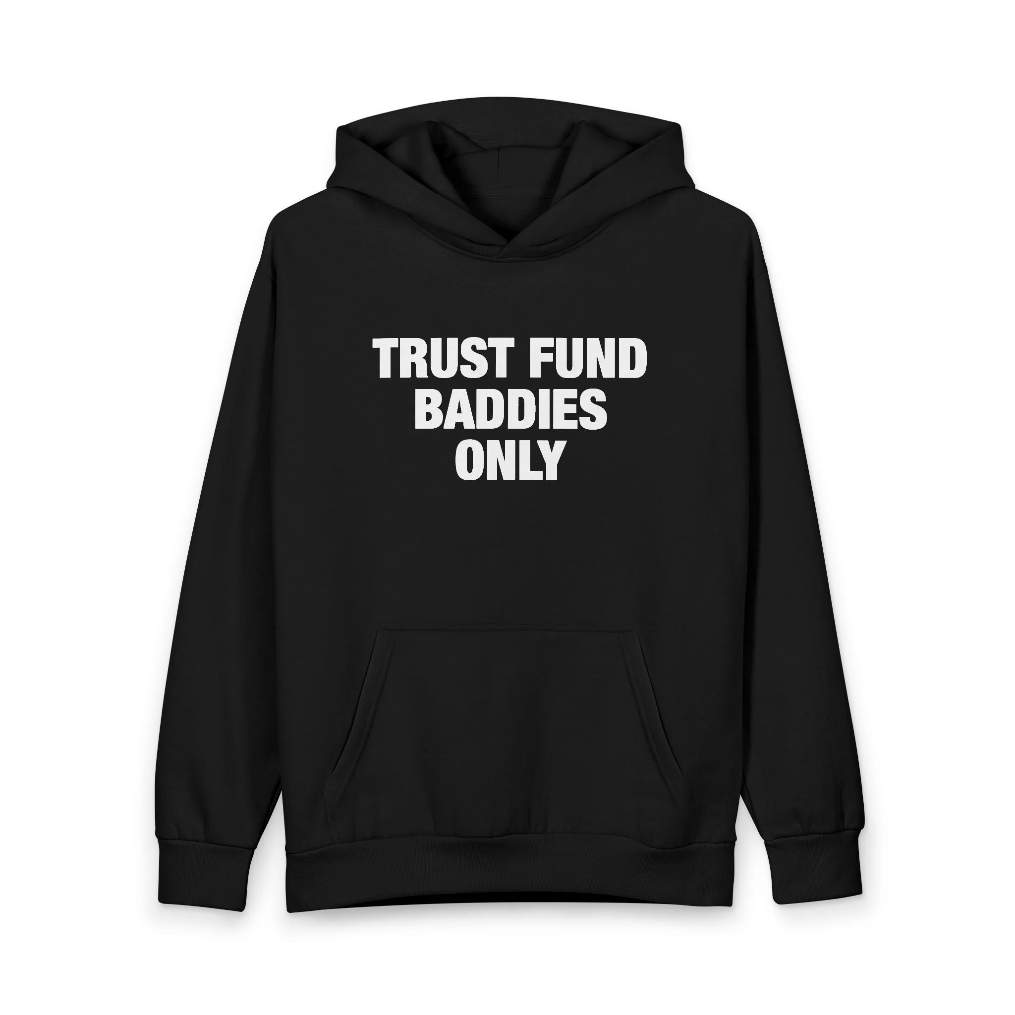 Trust Fund Baddies Only Hoodie wraps you in quiet confidence, thick, premium cotton that feels like a private jet cabin at 35,000 feet. Designed oversized for that effortlessly spoiled silhouette, it’s comfort with status written all over it.